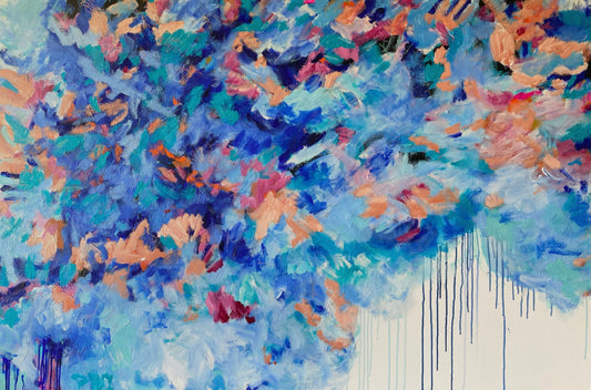 Inspired by nature and the colours of the landscape, these abstract paintings are about places felt rather than seen. Soft, sweeping marks meet bold drips and scratches, capturing the tension between fragility and resilience.